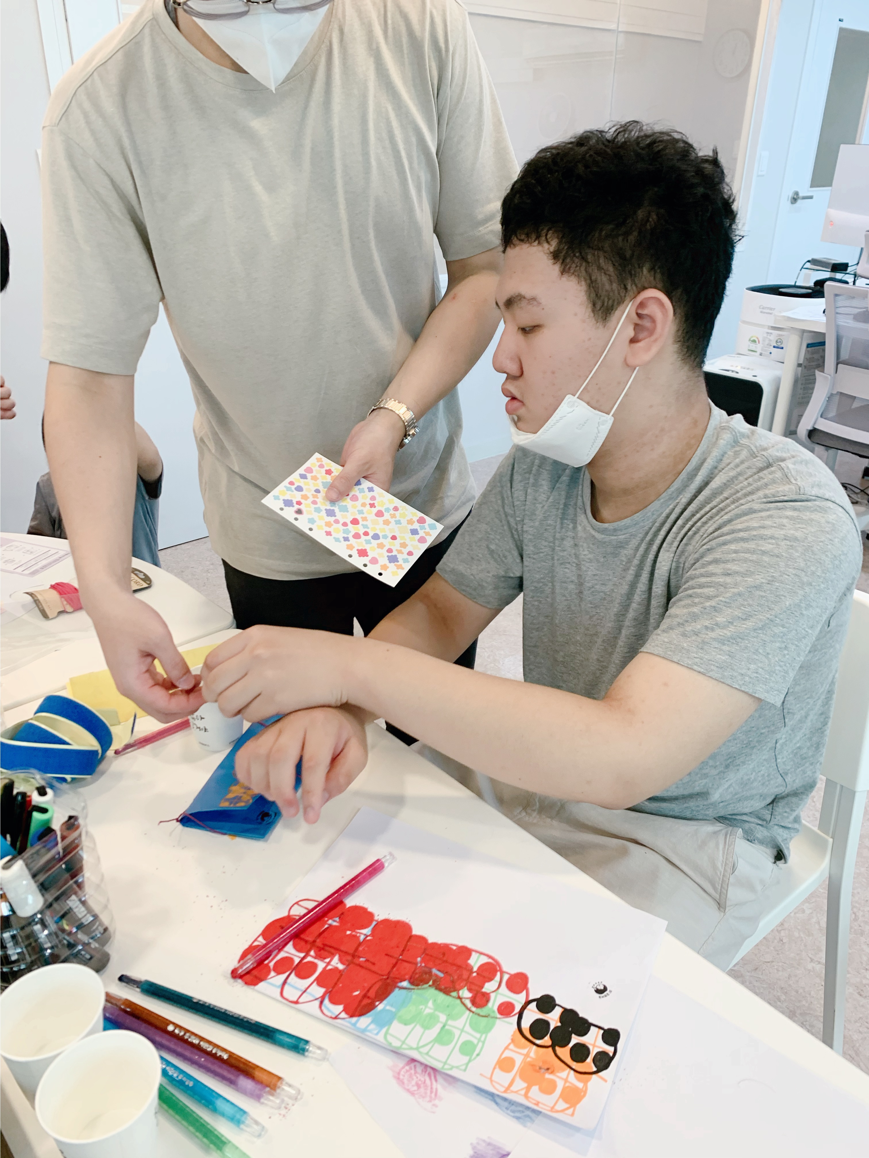 지갑을 만들고, 드로잉으로 장식하는 모습