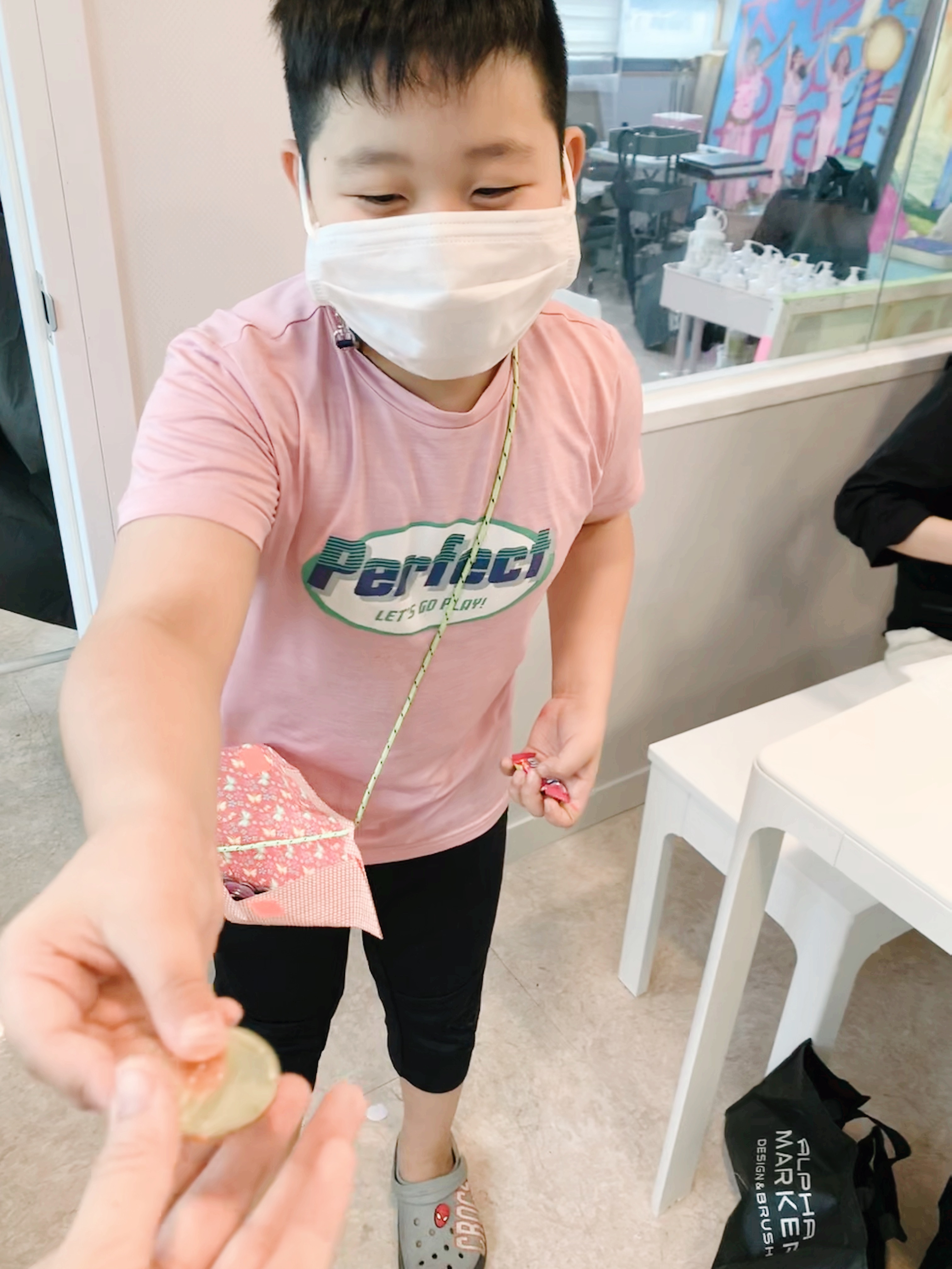 동전을 주고 받으며 직접 놀이도 해보고 즐거워하는 모습