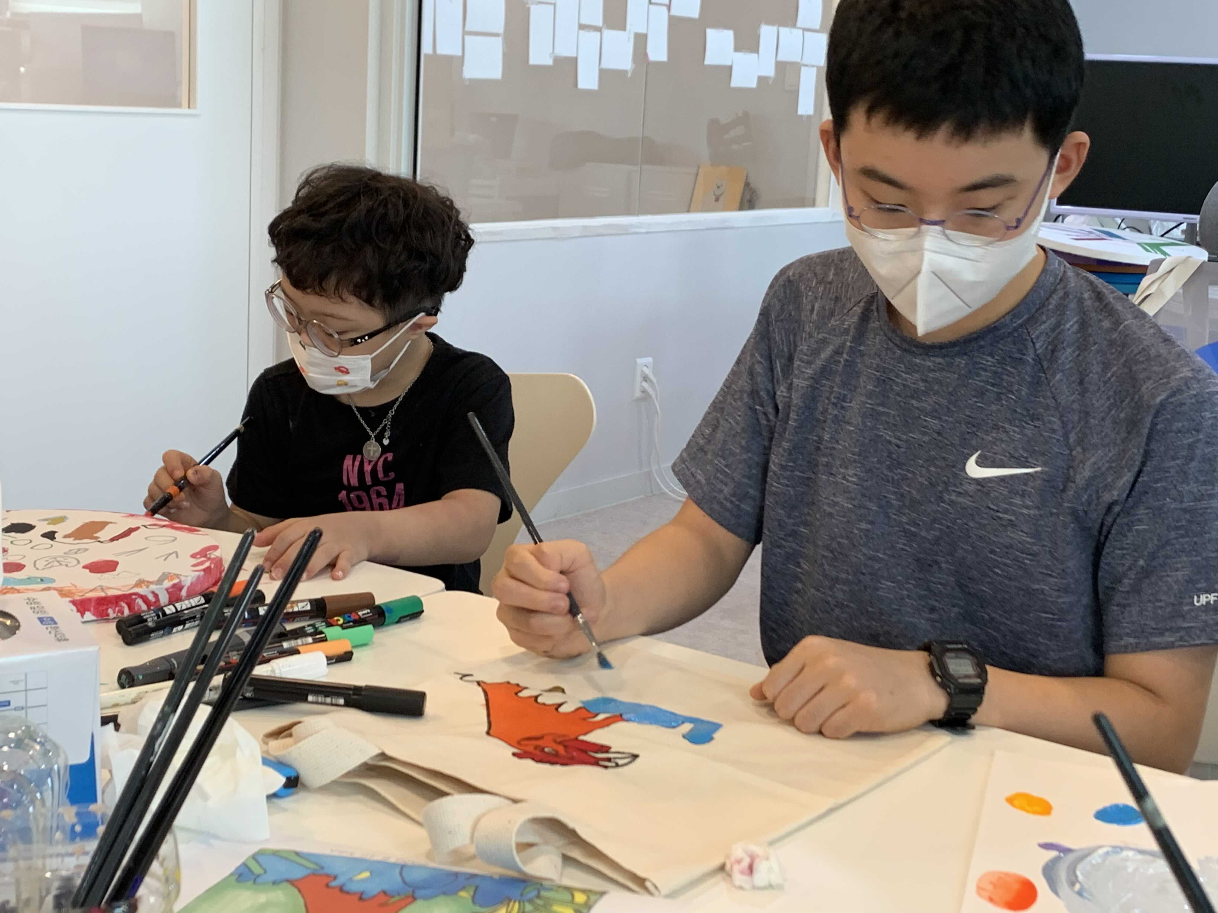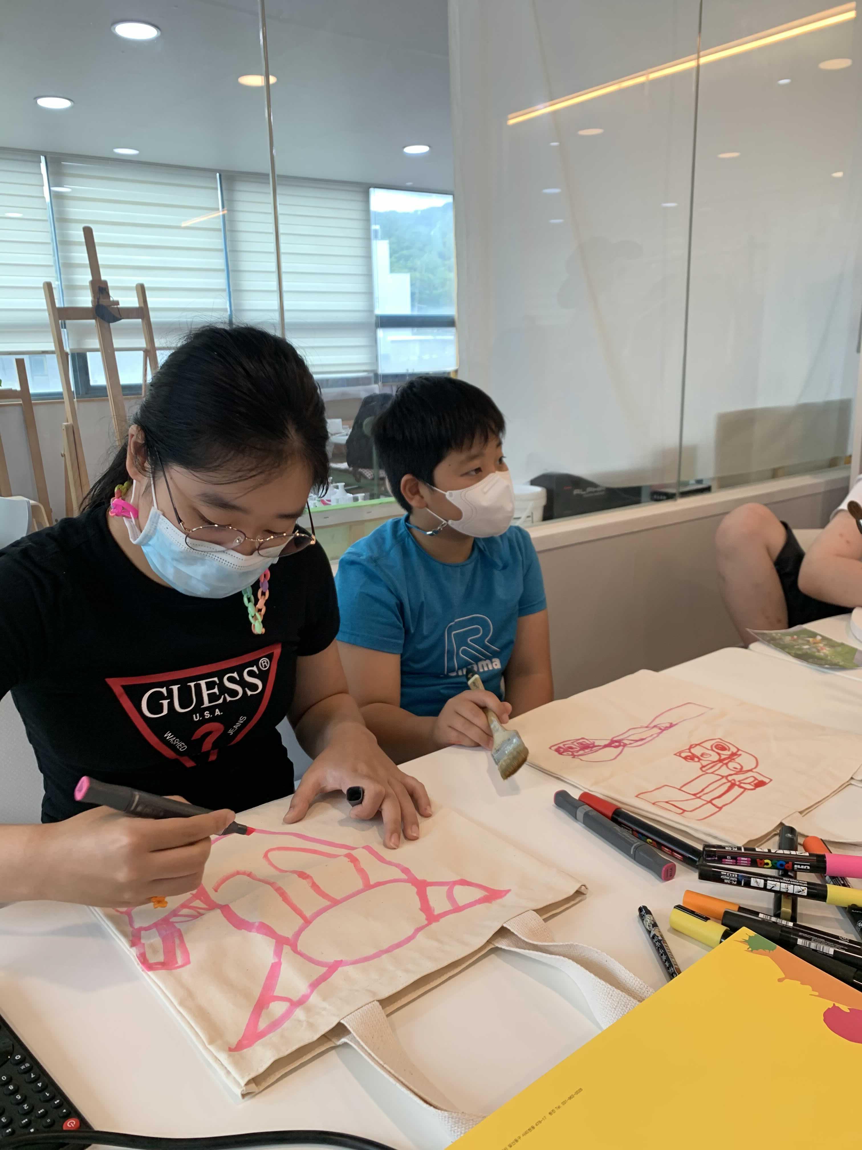 아크릴물감의 용도와 활용을 자연스럽게 터득해 캔버스와 에코백에 각각 자신의 그림을 그렸다.